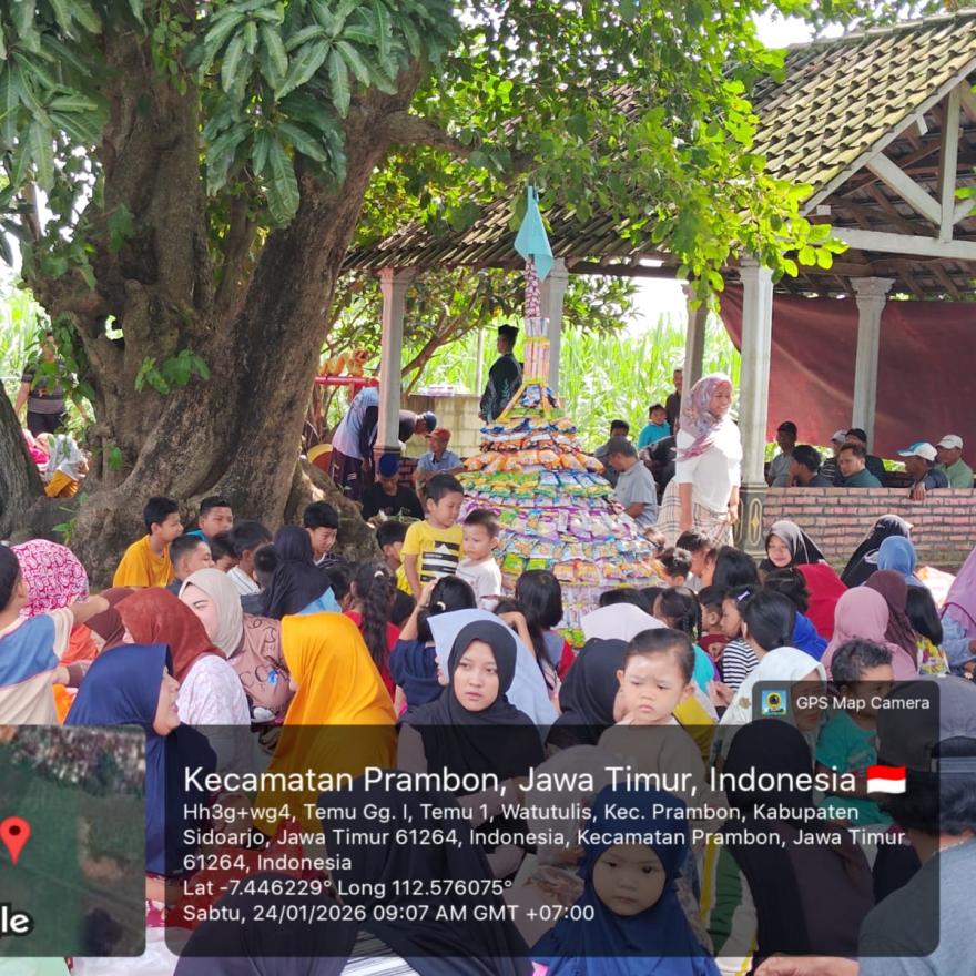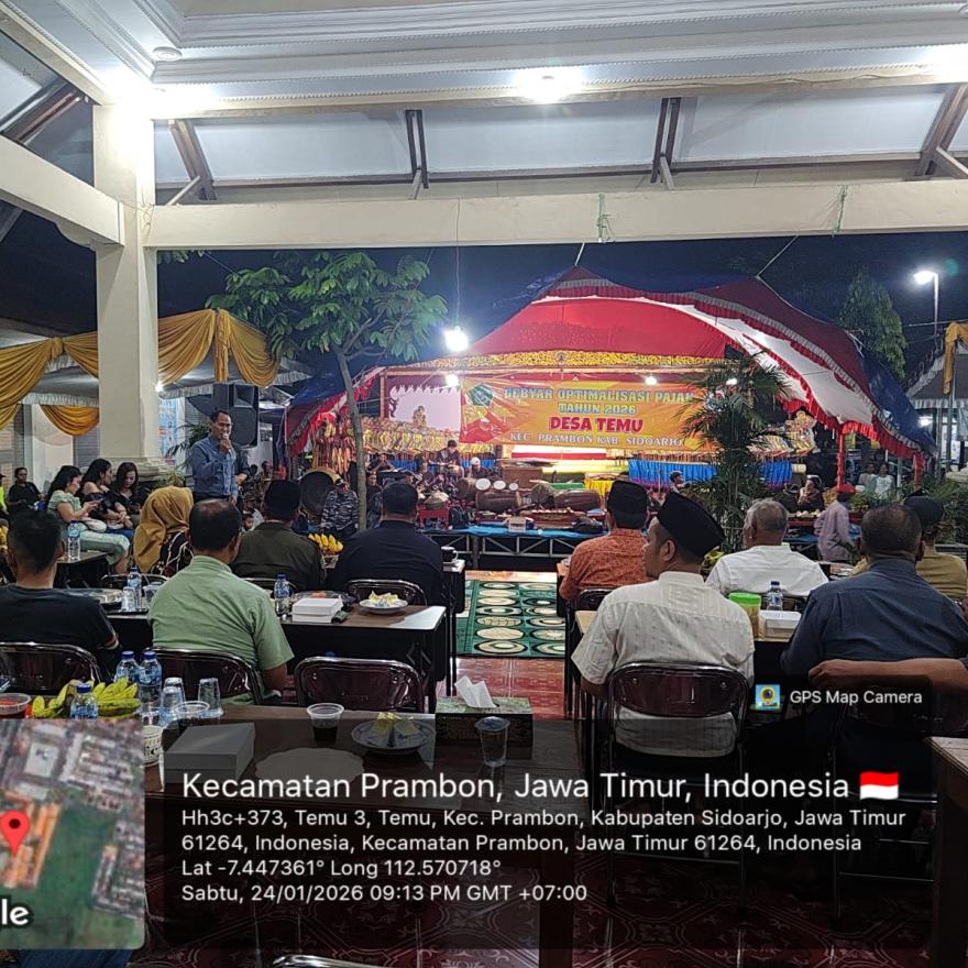 pemdes temu-Desa Temu, Kecamatan Prambon, Kabupaten Sidoarjo kembali menggelar tradisi tahunan Sedekah Bumi sebagai bentuk ungkapan rasa syukur kepada Tuhan Yang Maha Esa atas limpahan rezeki dan hasil bumi. Rangkaian kegiatan ini berlangsung dari tanggal 23 Januari 2026 sampai dengan 24 Januari 2026 bertempat di Balai Desa Temu.