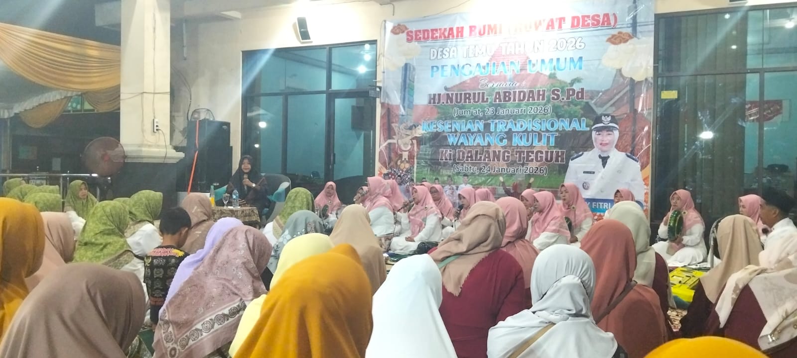 Pada malam harinya dilanjutkan dengan acara Pengajian Umum oleh Bu Nyai Hj. Nurul Abidah S.Pd dari Pasuruan. Diiringi Grup Rebana Modern An Nur Fadlily & Ustadz Juari Efendi. Acara dihadiri dari semua Lembaga Desa dan warga Desa Temu.