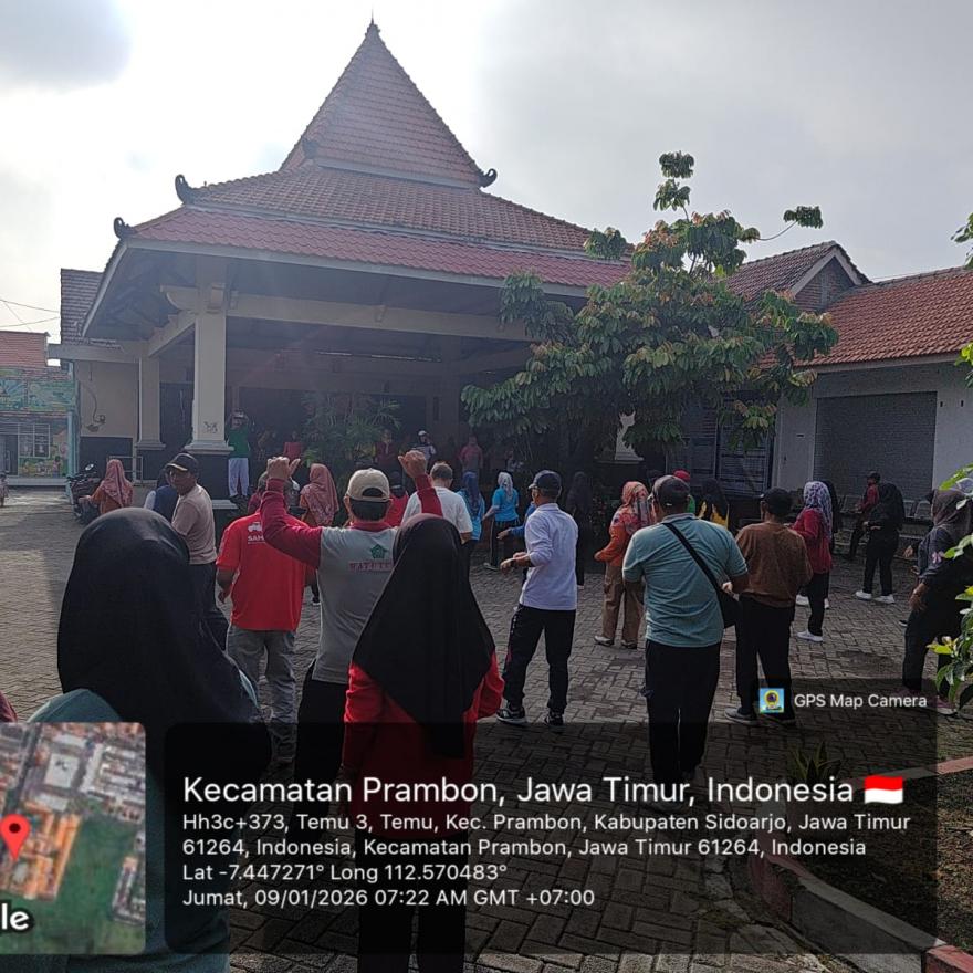 pemdes temu-Senam Kesehatan Jasmani yang dilaksanakan di Desa Temu pada hari Jumat tanggal 09 Januari 2026 diikuti oleh Perangkat Desa beserta Kepala Desa Se Kecamatan Prambon, juga dari Dinas Kecamatan, POLSEK Prambon serta PUSKESMAS Prambon. Diramaikan juga dari warga setempat Desa Temu khususnya para Kader dan RT maupun RW.