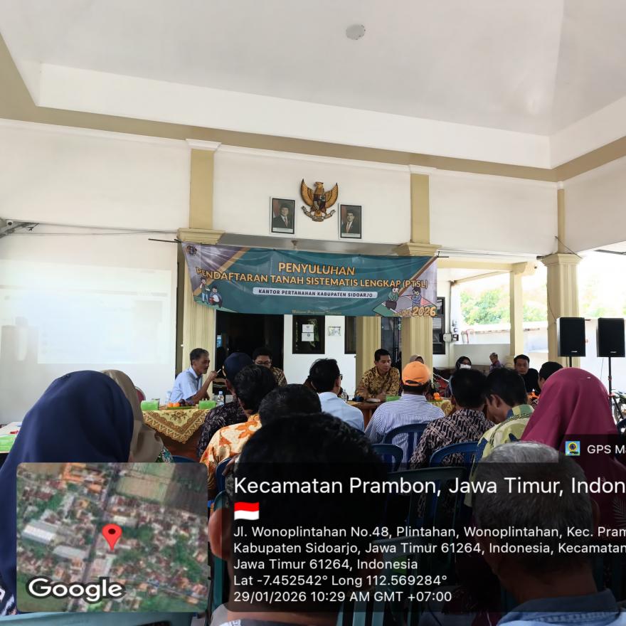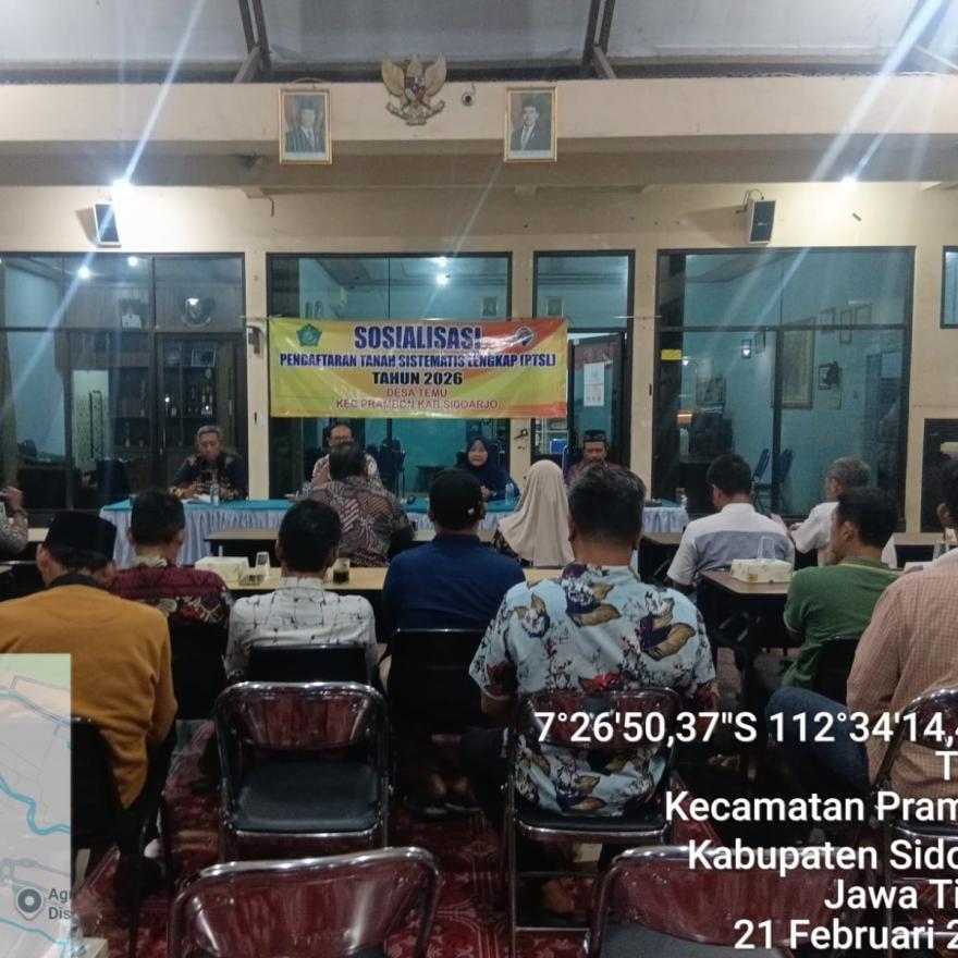pemdes temu-Desa Temu Kecamatan Prambon Kabupaten Sidoarjo telah mengadakan sosialisasi tentang PTSL atau Pendaftaran Tanah Sistematis Lengkap Tahun 2026 bersama Lembaga Desa. Diharapkan melalui program ini masyarakat yang tanah atau rumahnya belum bersertifikat untuk bisa segera mendaftar pada tahun ini. Sebelumnya pada tahun 2019 juga sudah pernah ada program yang sama dr BPN Sidoarjo. Dalam sosialisasi malam itu dijelaskan apa saja syarat dokumen yang perlu dipersiapkan juga besaran biaya PTSL yaitu Rp.150.000,- sesuai dengan SKB 3 Menteri. Diharapkan agar masyarakat Desa Temu bisa memanfaatkan program ini.